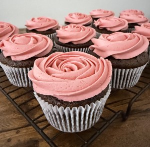 Using a 1/4 cup measure, fill cupcake wells about half full. Bake for 18-22 minutes, until a cake tester comes out clean. Cool in pan for a few minutes, then remove from pan and cool completely on wire racks. Cool completely before frosting.