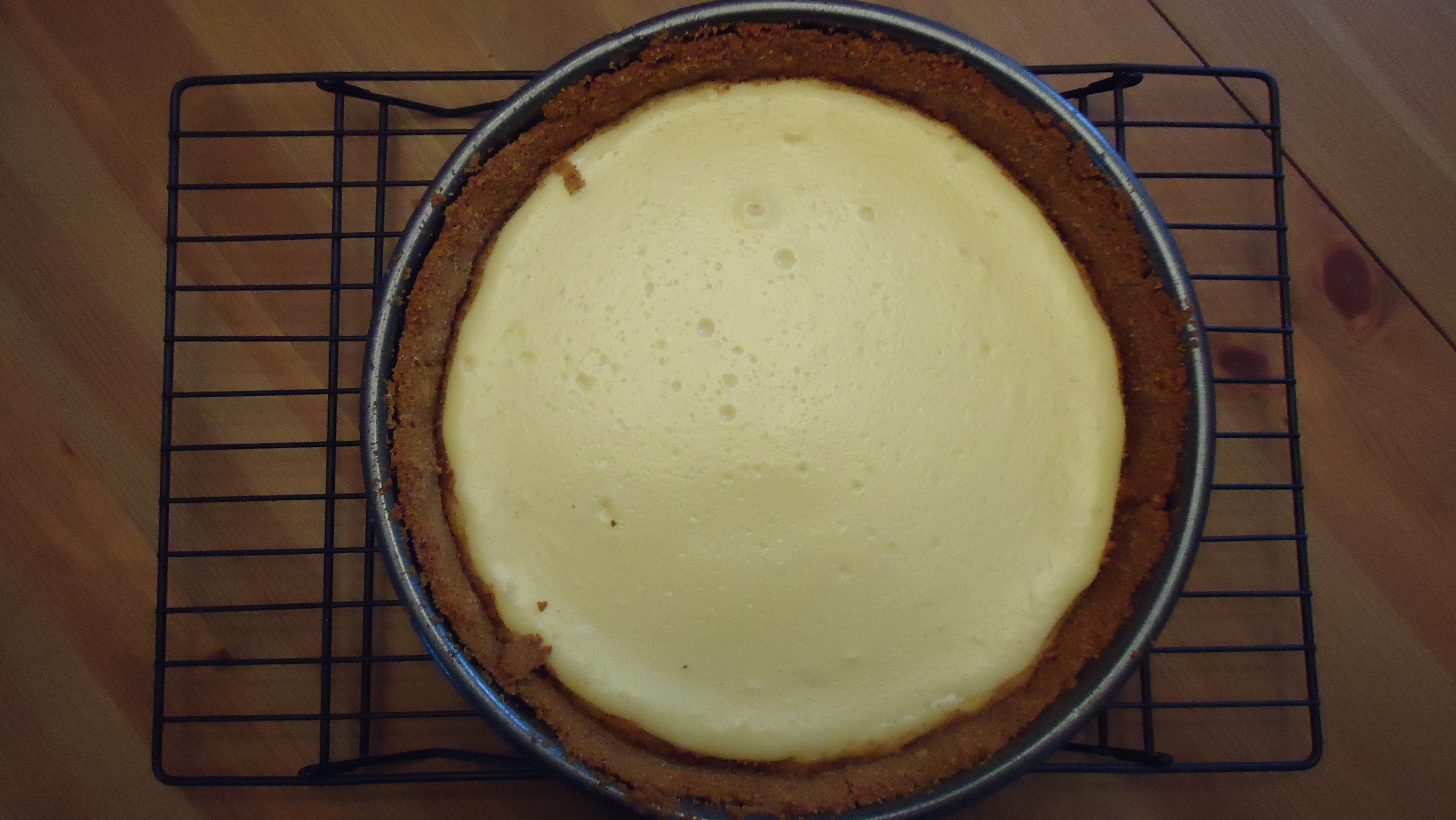 The Super Bowl is tomorrow, and because we’re rooting for the Giants in our house, I’ve prepared a New York style cheesecake to celebrate.  I’m not sure what makes a cheesecake “New York style,” but this was fairly easy to prepare, except for the crust.  This was my first graham cracker crust, and I definitely improvised and deviated from the original recipe to get the consistency and amount I needed, but it turned out just fine.  The true test will be if it tastes good, but we won’t know until tomorrow, as cheesecake must be refrigerated overnight before serving.  We’ll add some fresh whipped cream, blueberries, and strawberries tomorrow.
