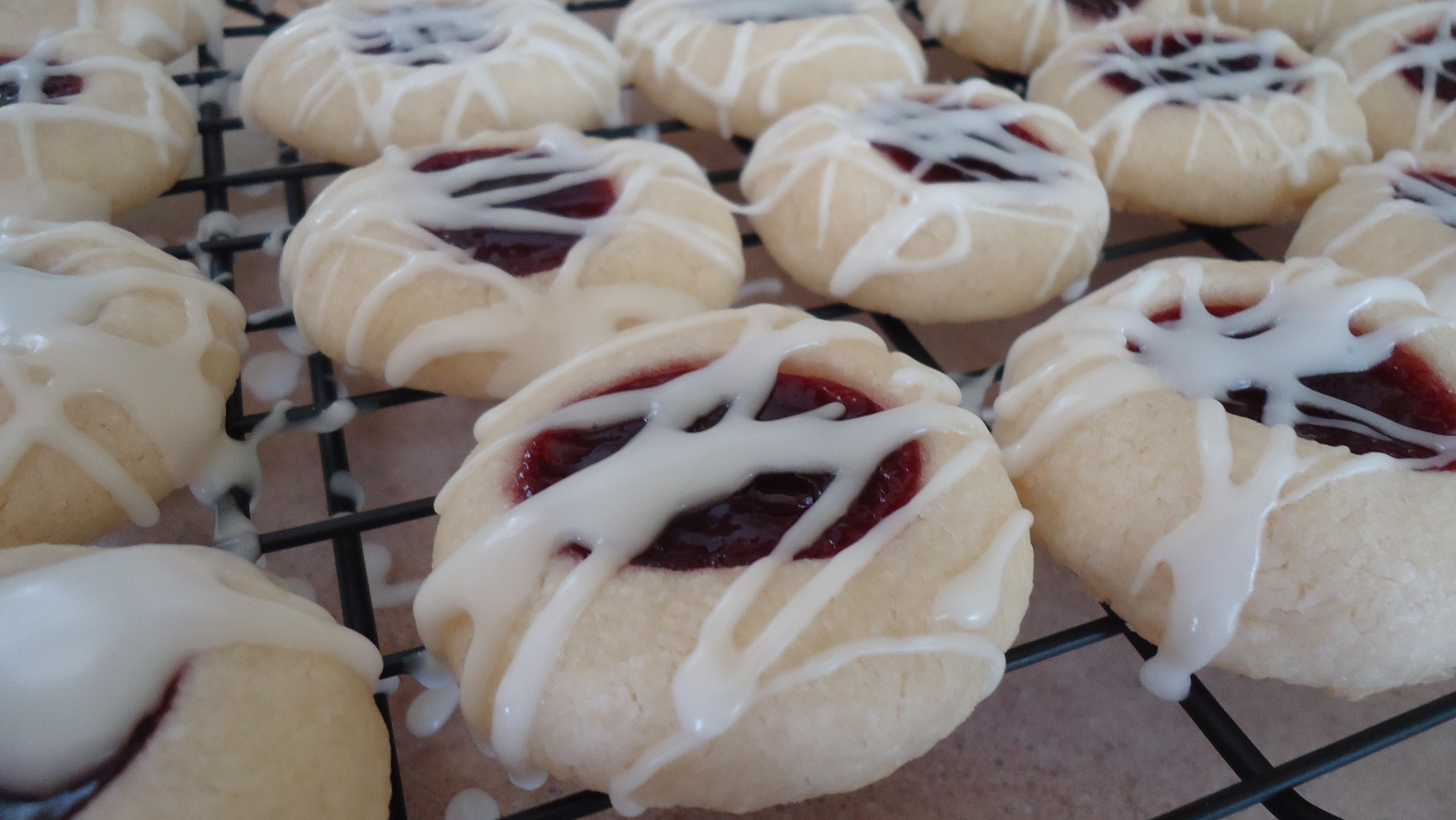 Shortbread is a great cookie, and this thumbprint version is very easy to make, despite its somewhat fancy appearance. The dough is basic; you could probably use any flavor jam or preserves for the thumbprint, and the almond glaze is optional.