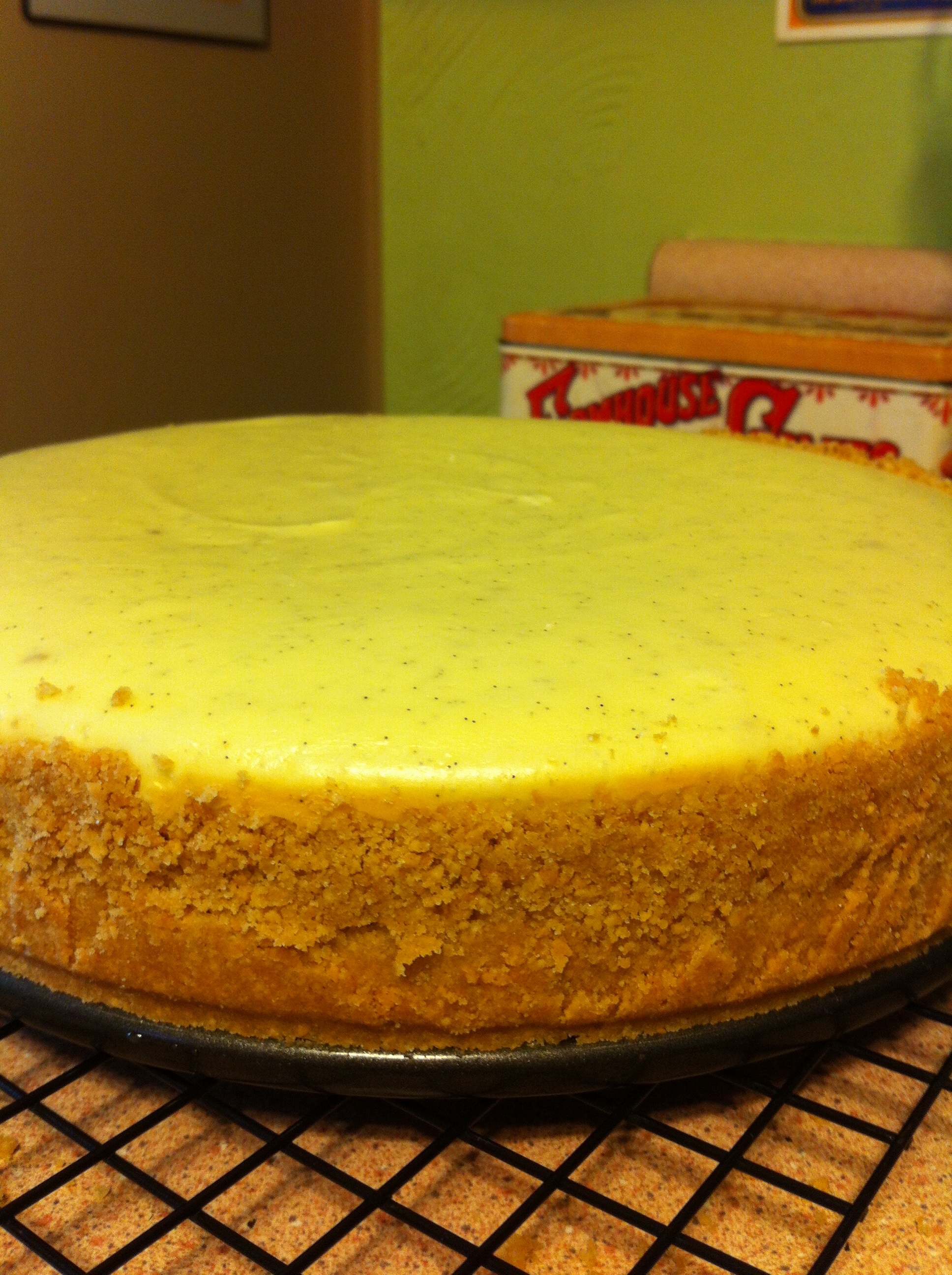 I may have gone slightly overboard with the Passover desserts this year. There just seemed like so many interesting options, and I had to try them all. In addition to our toffee chocolate matzoh and truffles on tomorrow night’s seder table, there will be this cheesecake, a leaven-free treat of vanilla bean and almond goodness.