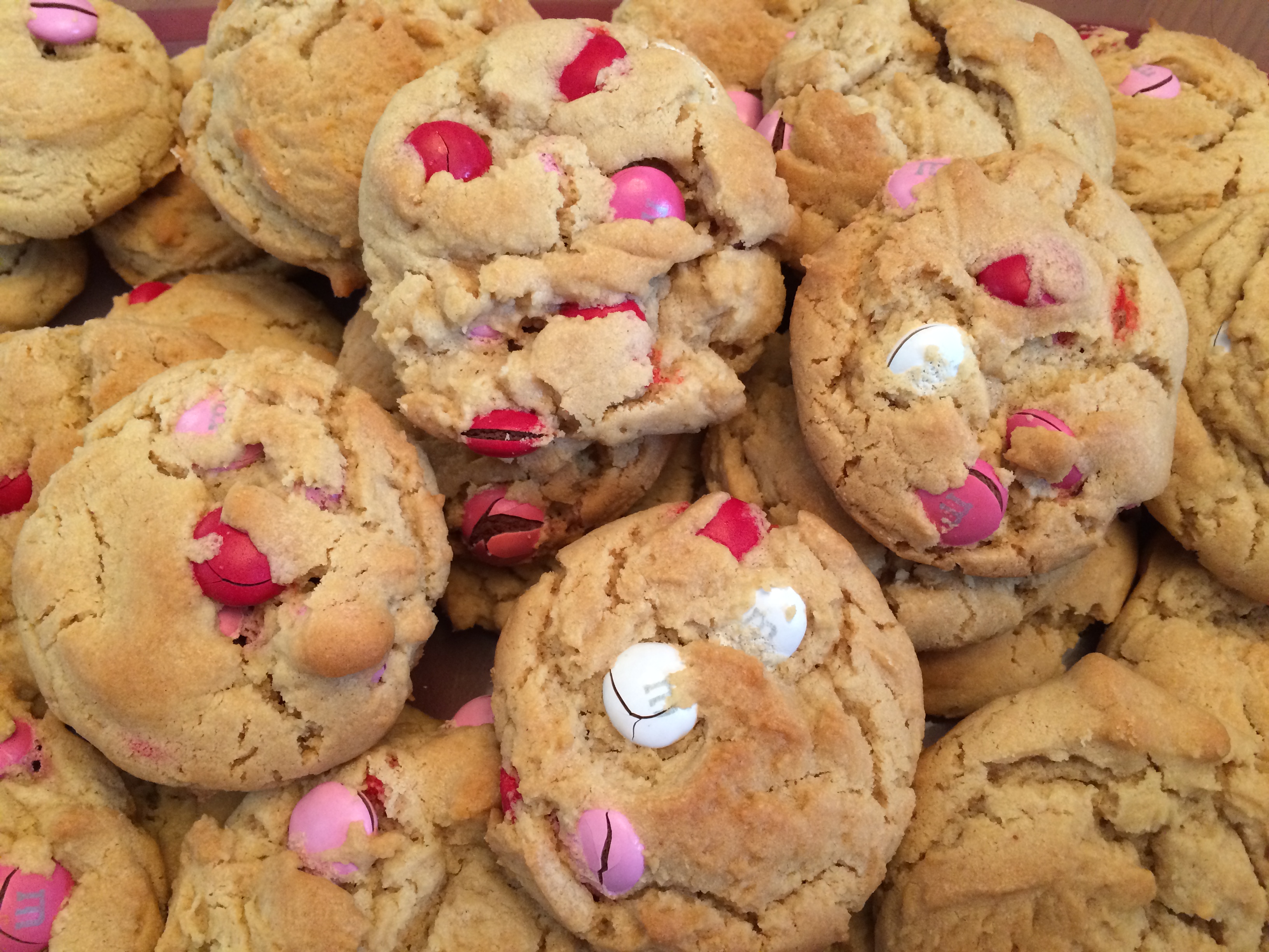 pbmmValentine’s Day is just around the corner, and I’m preparing a care package for my goddaughter Maureen and her family. This year, Mo is getting some peanut butter M&M cookies, and there will be a few other things for her and her baby sister Margo as well.
