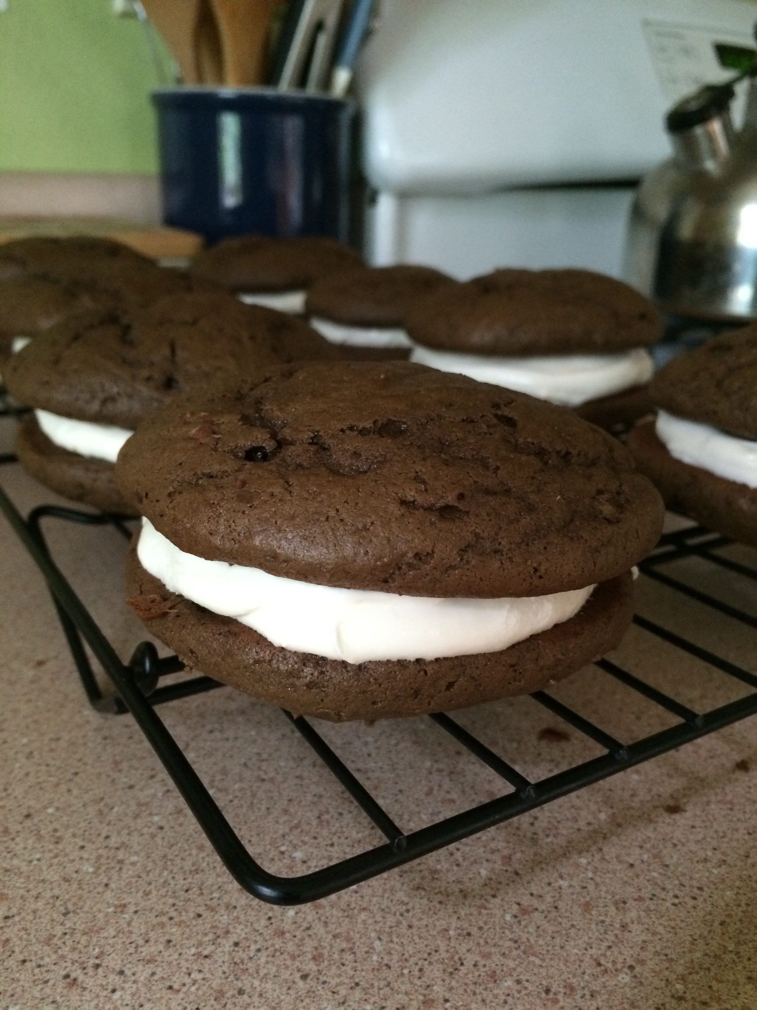 The whoopie pie: cake, cookie, or pie? To me, certainly not a pie; more of a cross between a cake and a cookie.