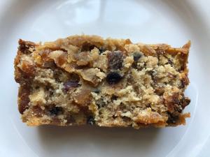 Both Mike and my mom tried both types of fruitcake, and while they preferred the darker version, they also liked this one. I chose to bake this recipe in two smaller loaf tins, which I think helps with baking time, and also allows you to give one away as a gift – perfect for the holidays. My second loaf went to my friend Arvind and his family, and he let me know that it was gone in less than 48 hours.