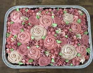 - Green, pink, and red gel food coloring, for flower and leaf decorations