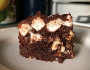 Pour into the baking tin and bake for 25-30 minutes, until a cake tester inserted in the center comes out clean. Remove from oven and cool brownies for about 20 minutes before frosting.