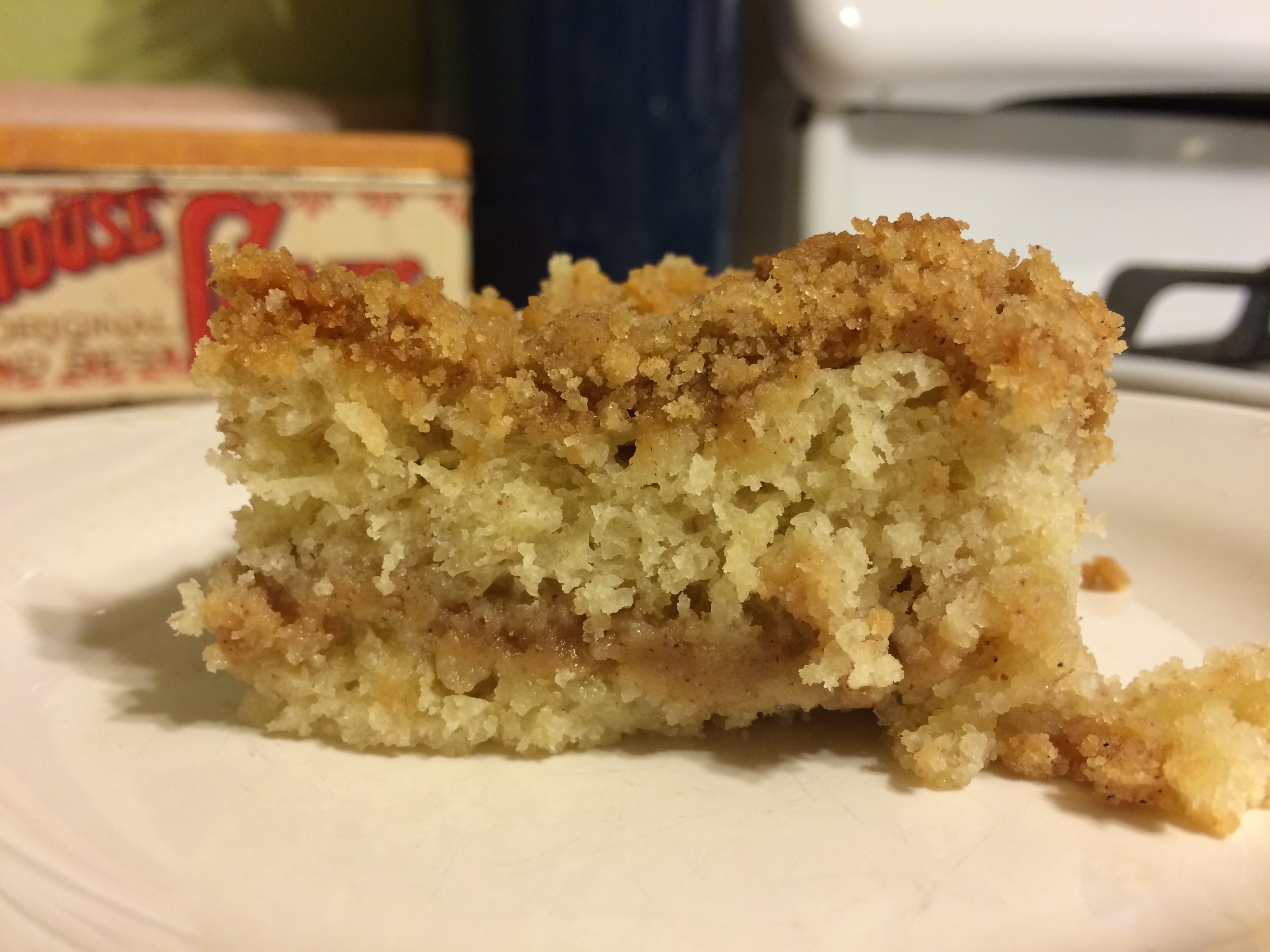 Pour about 1 1/2 cups of batter into the parchment-lined tin; top with filling in an even layer. Spoon remaining batter over the filling and use an offset spatula to smooth it into an even layer; some of your filling will probably peek through the top of the batter, and that’s okay. Top with crumb mixture, pressing gently to help it stick.