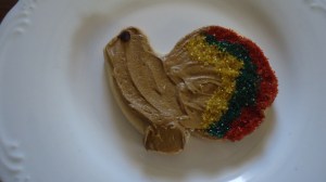 Mike loves Halloween. Each year he impresses our neighbors with elaborately carved pumpkins, and this year I decided to make him some elaborately decorated cookies. A few weeks ago I picked up a set of Halloween cookie cutters, and I chose my favorites for this job. I admit, though, that I’ll never make 15 different varieties of cut-out cookies again in one project because it literally took me all afternoon – about four hours – to decorate them all.