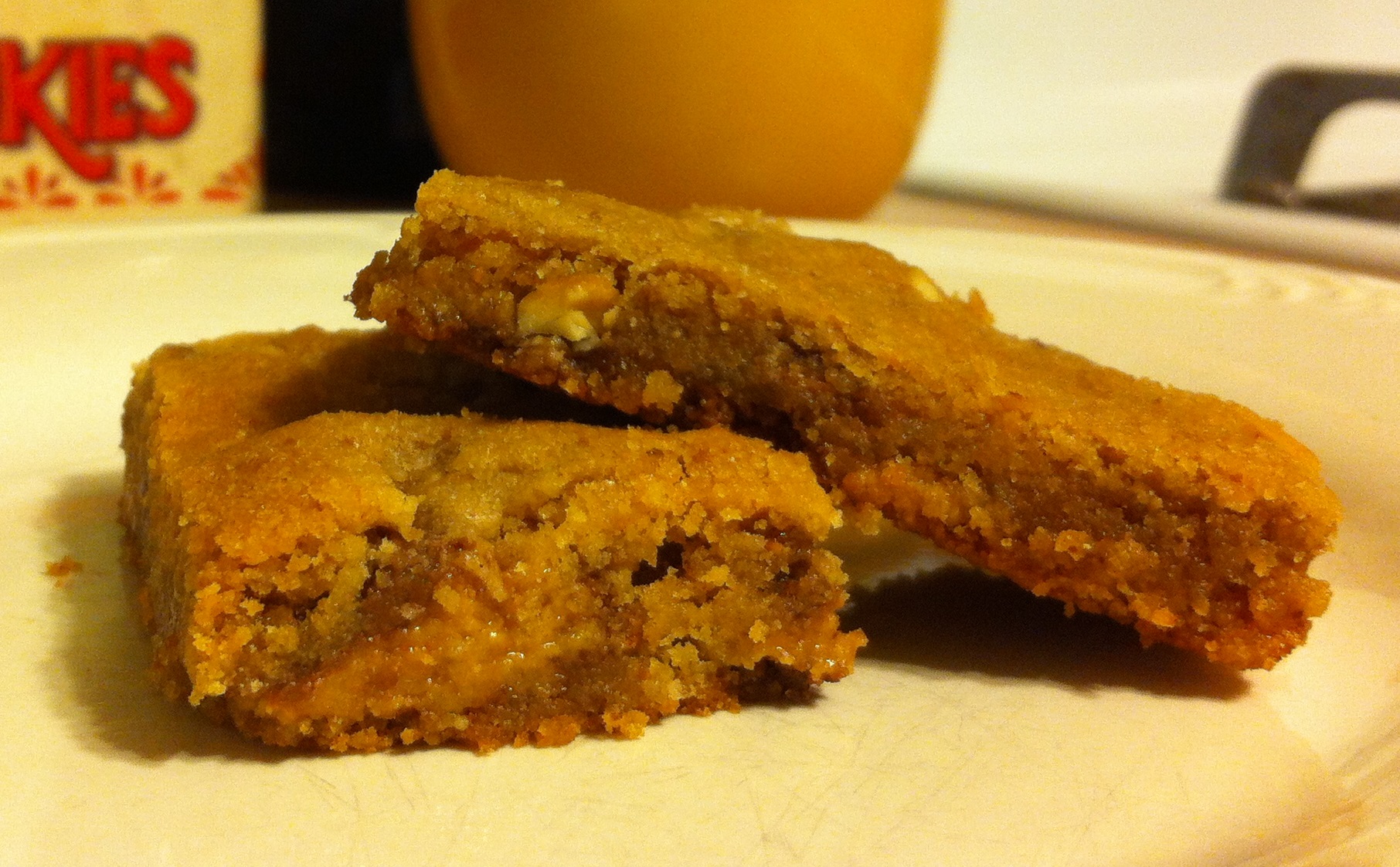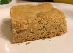 Bake for 30 minutes, then insert a cake tester in the center; blondies are done if the cake tester comes out clean or with just a few moist crumbs. Be careful not to over-bake these; peanut butter treats tend to dry out if they’re baked too long.