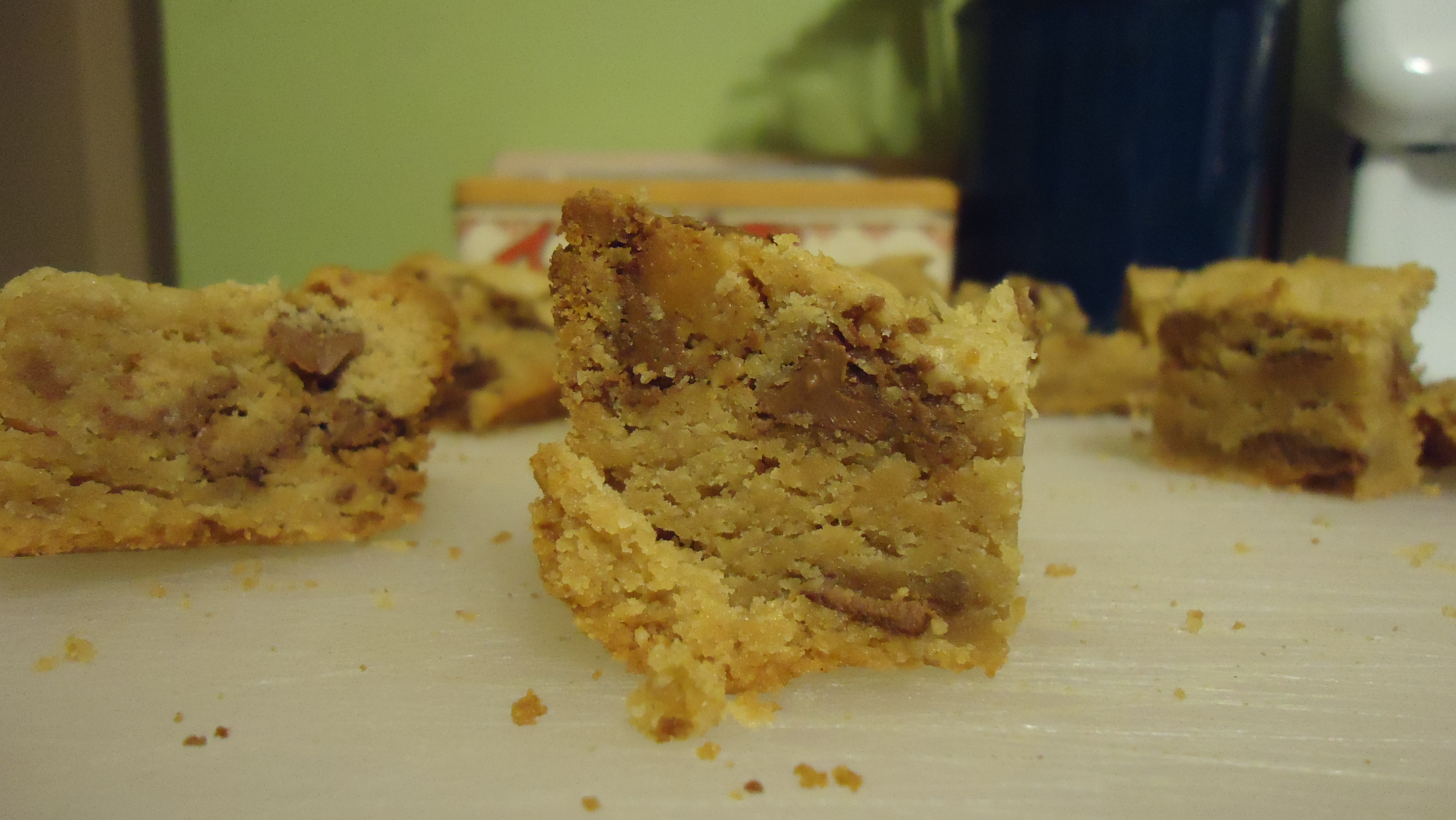 The recipe below combines two of my favorites: white peanut butter eggs and miniature Reese’s Pieces. You could mix whatever candy you like into these blondies; the recipe is one of the best I’ve found, and I’ve made it with both peanut and regular M&Ms before. Next time I make these, I might melt some peanut butter chips and drizzle it over the top, just for an extra bit of peanut butter goodness, or include peanut butter chips in the batter. The possibilities are endless!