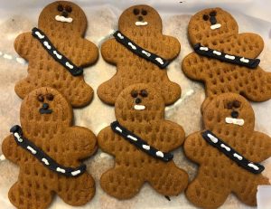 Tomorrow is May 4th, also known as Star Wars Day, and to celebrate I’ve baked some wookie cookies. While I don’t think they look much like Chewbacca and I already have plenty of ideas about how to improve them for next time, the cookies themselves are delicious. The gingerbread recipe comes from Sally’s Baking Addiction, though I chose to go with dark brown sugar in my dough, and the decoration is a combination of chocolate chips, royal icing, and a very thick glaze icing. Stay tuned for more wookie recipes in the future, and may the force be with you.